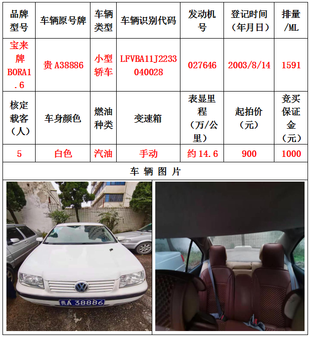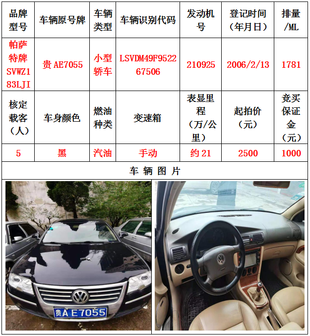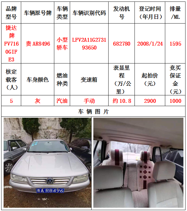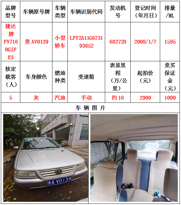 本次拍賣會拍賣的車輛共計10輛車,分別為帕薩特牌SVWZ183LJI小型轎車一輛、匯眾牌SH6530中型普通客車一輛、別克牌SGM6517小型普通客車一輛、別克牌SGM7161LE小型轎車一輛、寶來牌BORA1.6小型轎車一輛、捷達(dá)牌FV7160GiFE3小型轎車五輛(詳情見下文),為打包整體拍賣,不作拆分,整體起拍價:33900元,且只對標(biāo)的現(xiàn)狀進(jìn)行拍賣,不作任何質(zhì)量擔(dān)保。