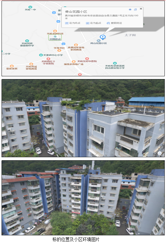 標(biāo)的位于關(guān)嶺縣關(guān)索鎮(zhèn)棗園路倚山花園,房屋總樓層7層,建成于2006年,交通生活便利,有多條公交線路經(jīng)過,周邊生活、醫(yī)療、教育、銀行等配套一應(yīng)俱全;房屋室內(nèi)現(xiàn)狀為毛坯,水電配套設(shè)施基本完善;房屋用途:住宅;土地用途:住宅;土地性質(zhì):國有出讓;房屋結(jié)構(gòu):混合結(jié)構(gòu)。