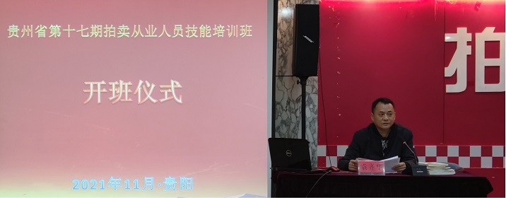 袁齊華會(huì)長(zhǎng)主持開(kāi)班儀式,介紹了貴州省拍賣行業(yè)的發(fā)展歷程、當(dāng)前形式情況,舉辦從業(yè)人員培訓(xùn)班的目的和意義。期望學(xué)員通過(guò)系統(tǒng)的拍賣理論知識(shí)學(xué)習(xí),在今后的實(shí)際工作中加以運(yùn)用,不斷的自我總結(jié)提高和創(chuàng)新,爭(zhēng)做新一代學(xué)習(xí)創(chuàng)新型拍賣人,為貴州拍賣事業(yè)作出新的貢獻(xiàn)。