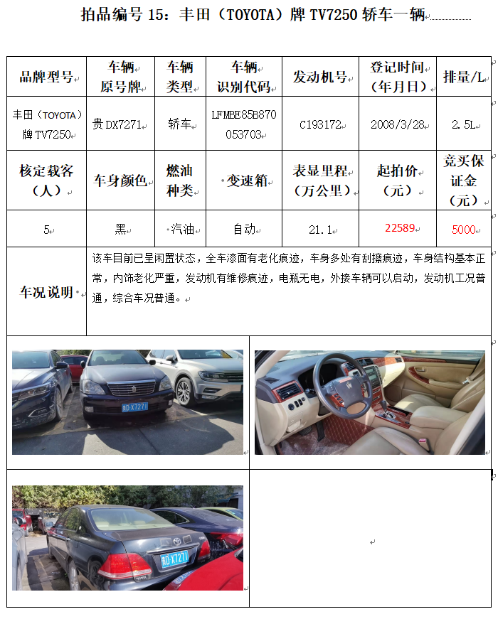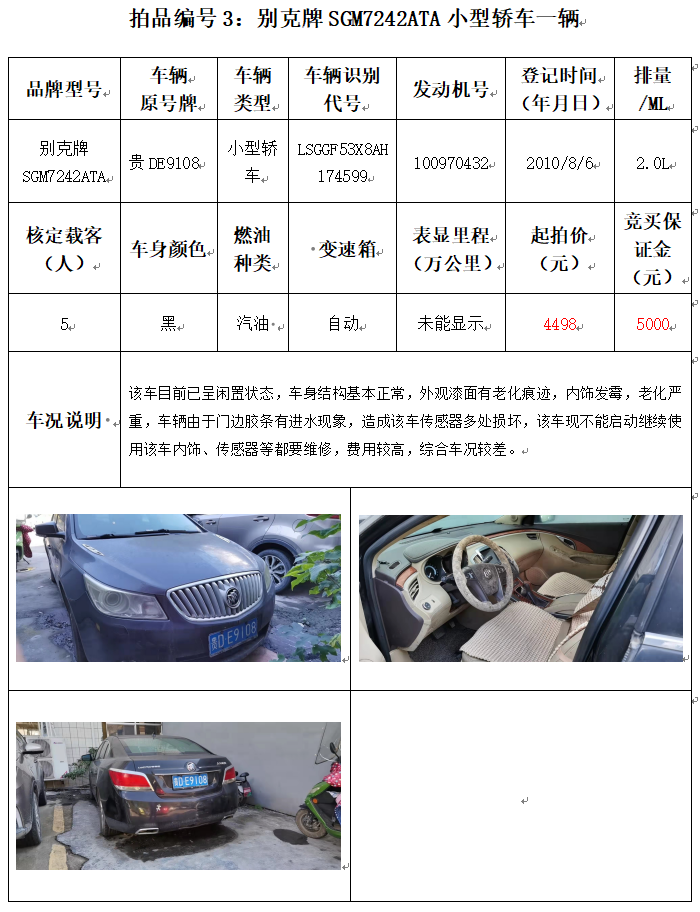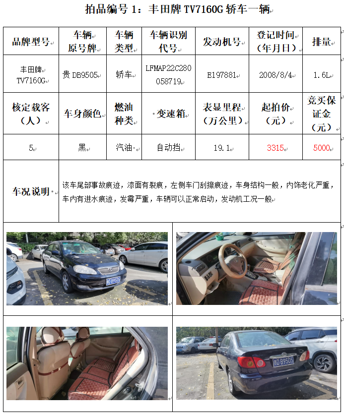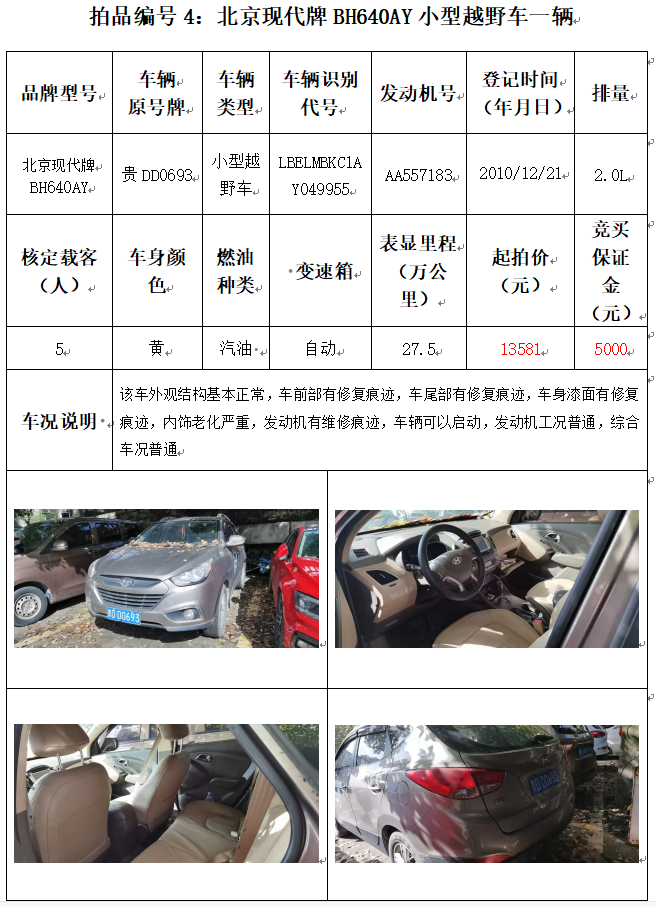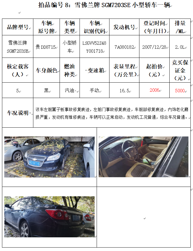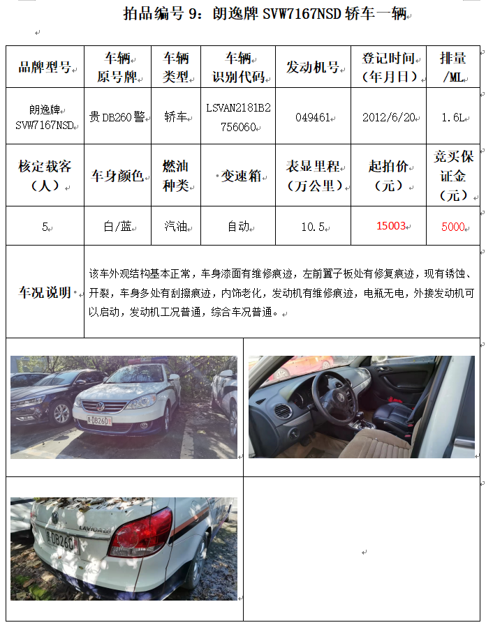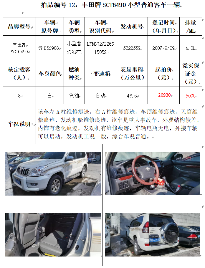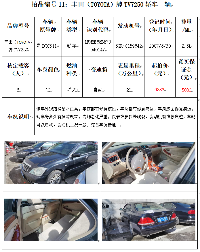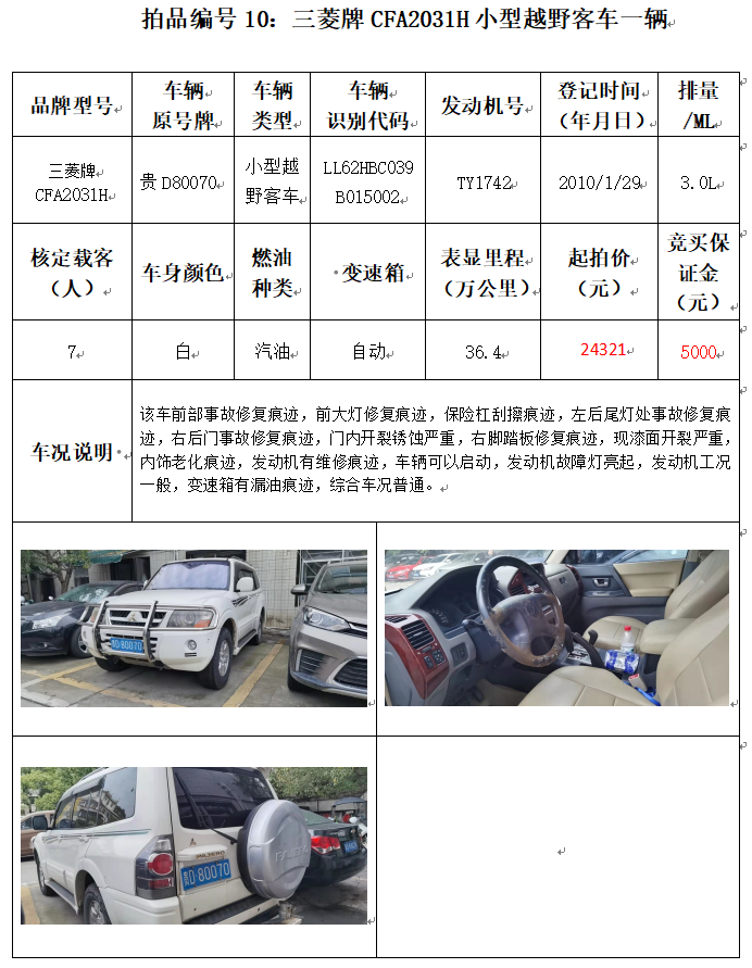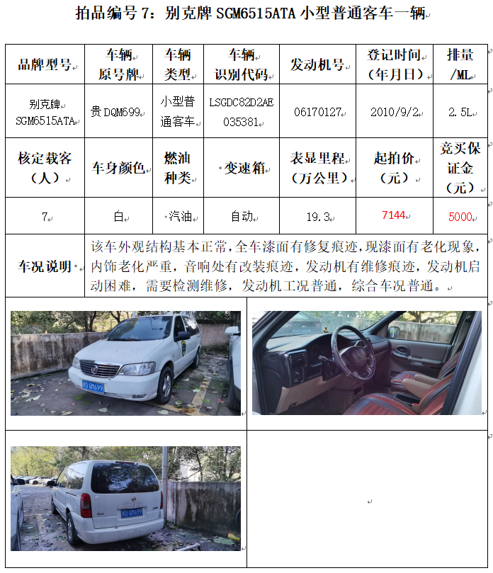 受委托,本公司定于2021年12月10日(星期五)下午14:00時,在銅仁市碧江區(qū)川硐教育園區(qū)誠信路銅仁市公共資源交易中心開標(biāo)六室(拍賣大廳)公開拍賣以下車輛: