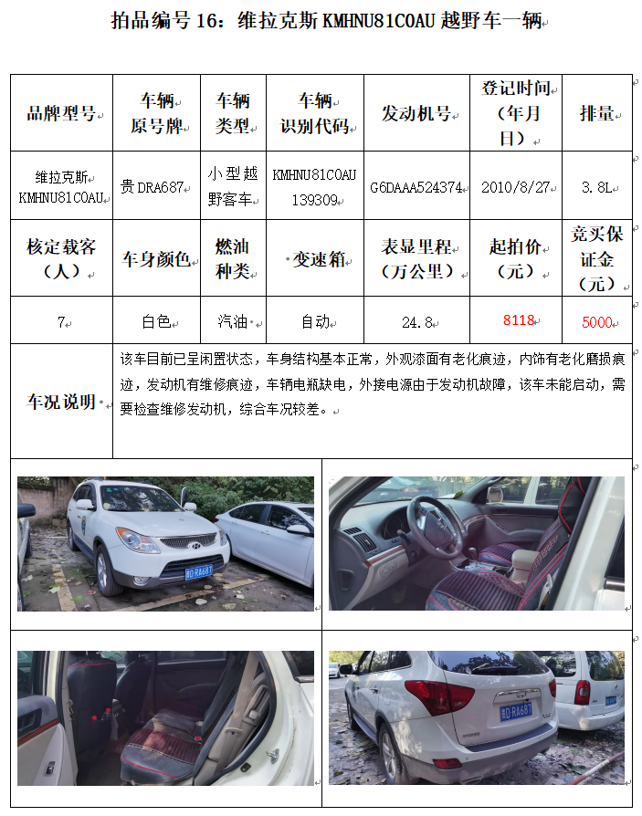 貴州春秋拍賣有限責(zé)任公司 ▏16輛機(jī)動車拍賣公告