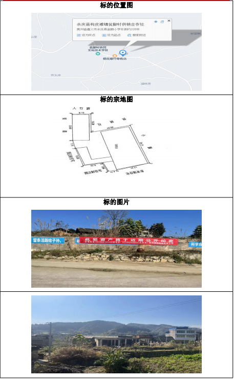 1、甕腳收購點土地:坐落于余慶縣構(gòu)皮灘鎮(zhèn)甕腳村;土地使用權(quán)性質(zhì):劃撥;證載土地使用權(quán)面積:1207㎡;起拍價:7.72萬元;保證金:1萬元;