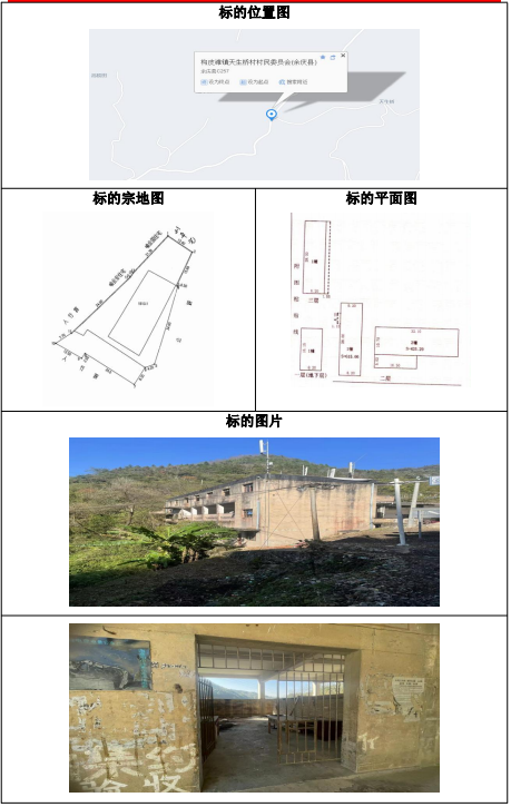 2、天生橋收購點:坐落于余慶縣構(gòu)皮灘鎮(zhèn)天生橋村;土地使用權(quán)性質(zhì):劃撥;證載土地使用權(quán)面積:1513.1㎡;證載建筑面積:1040.95㎡;起拍價:15.93萬元;保證金:2萬元;