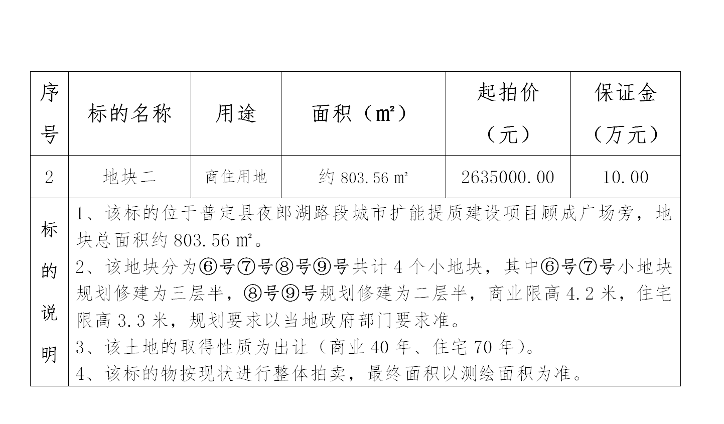 地塊二 ¥ 2635000.00元 保證金:10萬元
