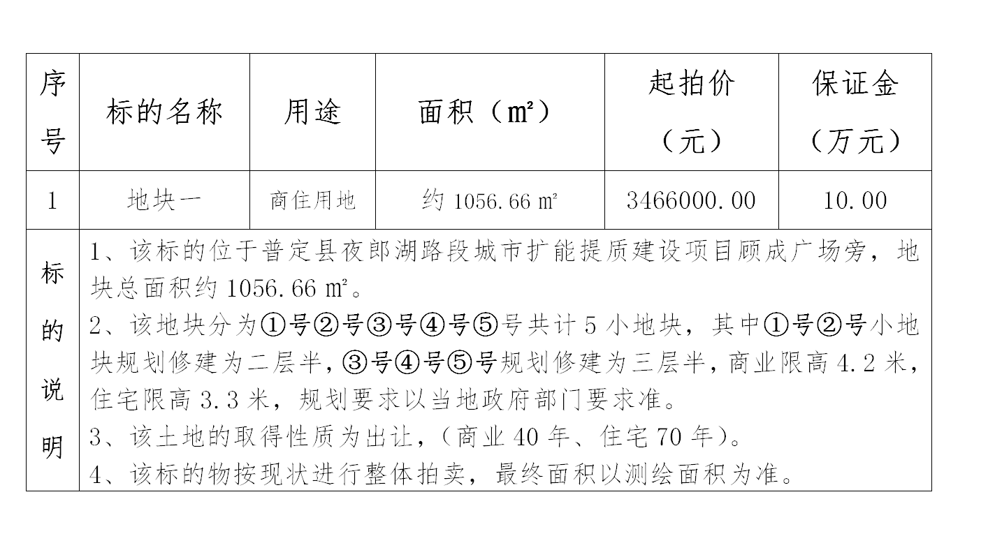起拍價:地塊一 ¥ 3466000.00元 保證金:10萬元